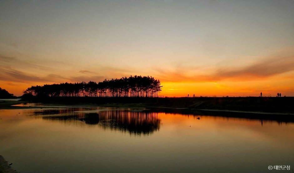 Unyeo Beach, located on Anmyeondo Island and facing the Yellow Sea, is characterized by its coastal dune and doksal, walls constructed for trapping fish at low tide, creating picturesque scenery. To the south of the beach, a breakwater adorned with pine trees, transforms into an island-like platform filled with water at high tide, offering stunning views at sunset. The beach welcomes swimmers during the summer season.