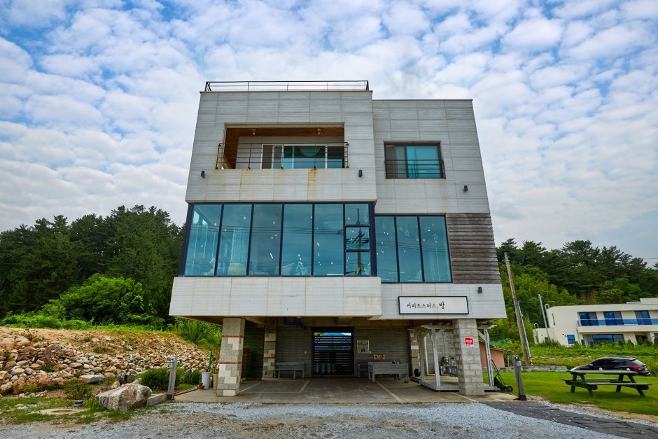 Coffee BAANG is located within 1kilometer from Mangyangjeong Beach serving coffee made with beans roasted on-site. The coffee menu features different brews and even decaffeinated coffee, offering a wide range of choices. One can also find large tables for groups. The cafe is also famous for its remarkable view, thanks to the window wall facing the sea, so you customers can refresh their mind with a cup of coffee and the view here. Various castella cakes (original, strawberry, tiramisu, chocolate) are available as an accompaniment to coffee.