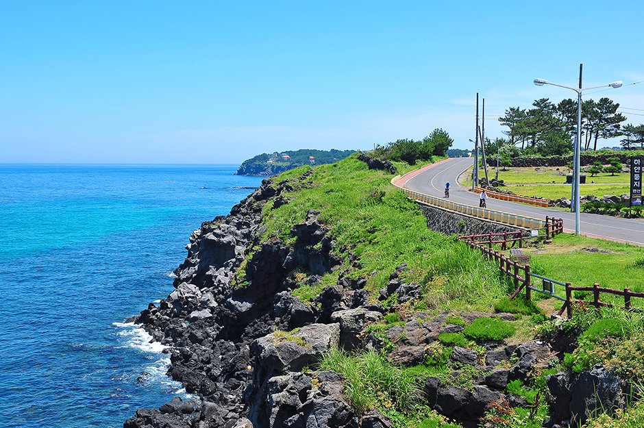 Located merely 10 kilometers from Jeju Airport, the Hagwi Aewol Coastal Road is a hidden gem among Jeju travelers. The coastal road starts at Gamun-dong Port in Hagwi-ri and follows the sea and passes ocean view cafes and pensions. The road is also part of Jeju Olle Trail 16 and is a famous bike riding and trekking spot.
