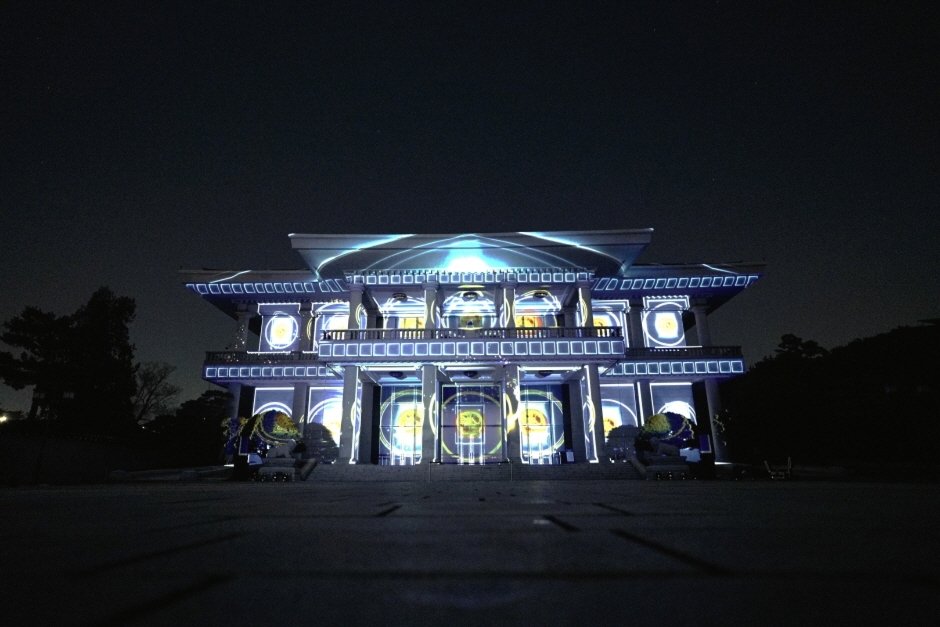 Cheong Wa Dae Media Display brightens the night through a media facade display on Yeongbingwan Hall. The display shows the history of Cheong Wa Dae through the theme “Twelve Lights”.